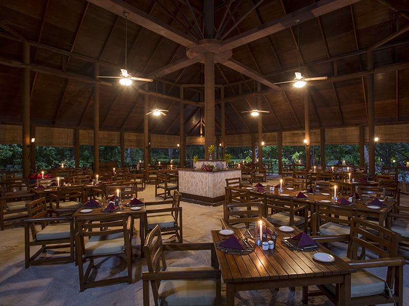 Filitheyo offers diverse dining, centered around a main international buffet and the à la carte Sunset Restaurant & Bar. Guests enjoy varied global cuisine, beachside ambiance, and private dining options for a romantic, exquisite experience.